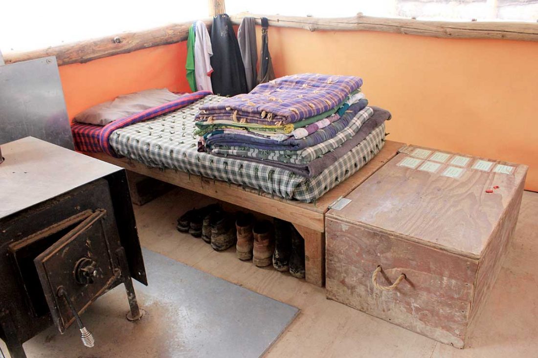 They build their own sleeping structures with pine posts, tarps and other supplies, and maintain them as well.