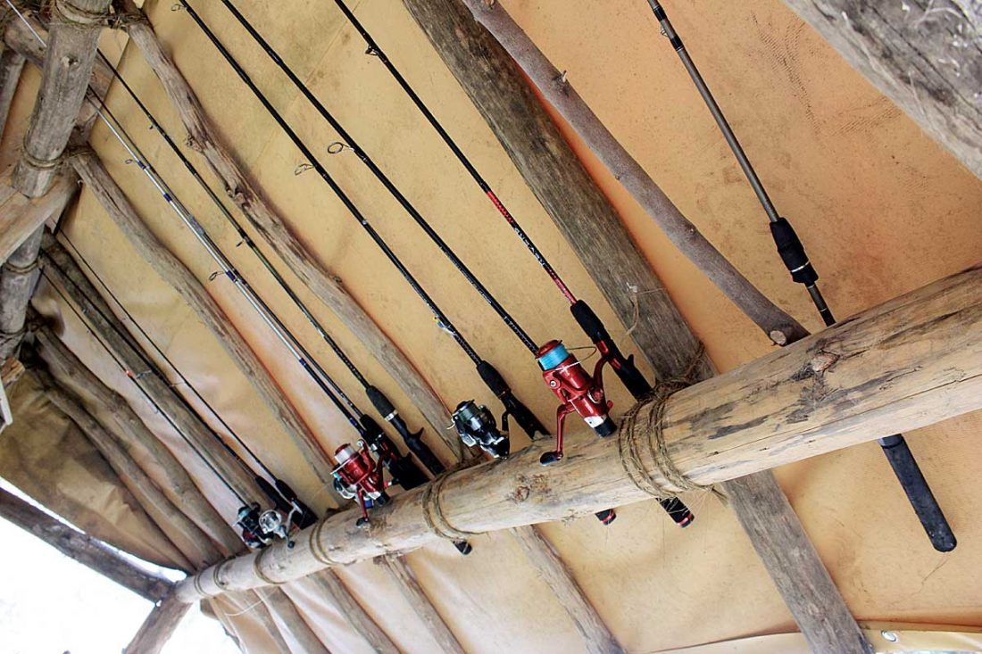 - Photo by Janelle Patterson Fishing poles for each member of the Discoverers group at Ohio Wilderness Boys Camp are lined under the multi-use tent, kept clean and protected from weather when not in use.