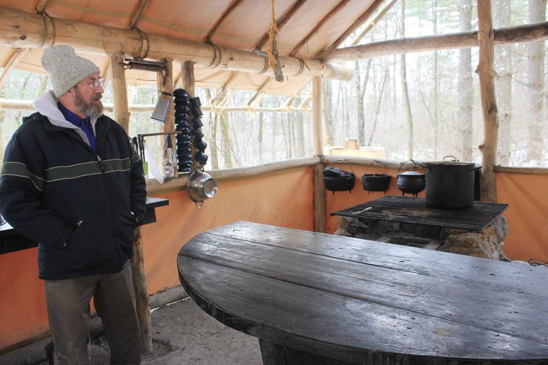 Photo by Janelle Patterson Camp Director Joe Thompson explains the construction of the Discoverers’ mess tent Friday, explaining that the boys are in charge of their weekend meal planning and preparation each week of their stay at Ohio Wilderness Boys Camp.