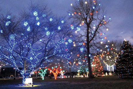 - The lights on the Christmas tree at the entrance to Gallipolis City Park is timed to Christmas music in the annual Gallipolis in Lights display. Thousands of lights hang from trees and branches, creating a visually appealing walk through the downtown park. (Photo by Jess Mancini)