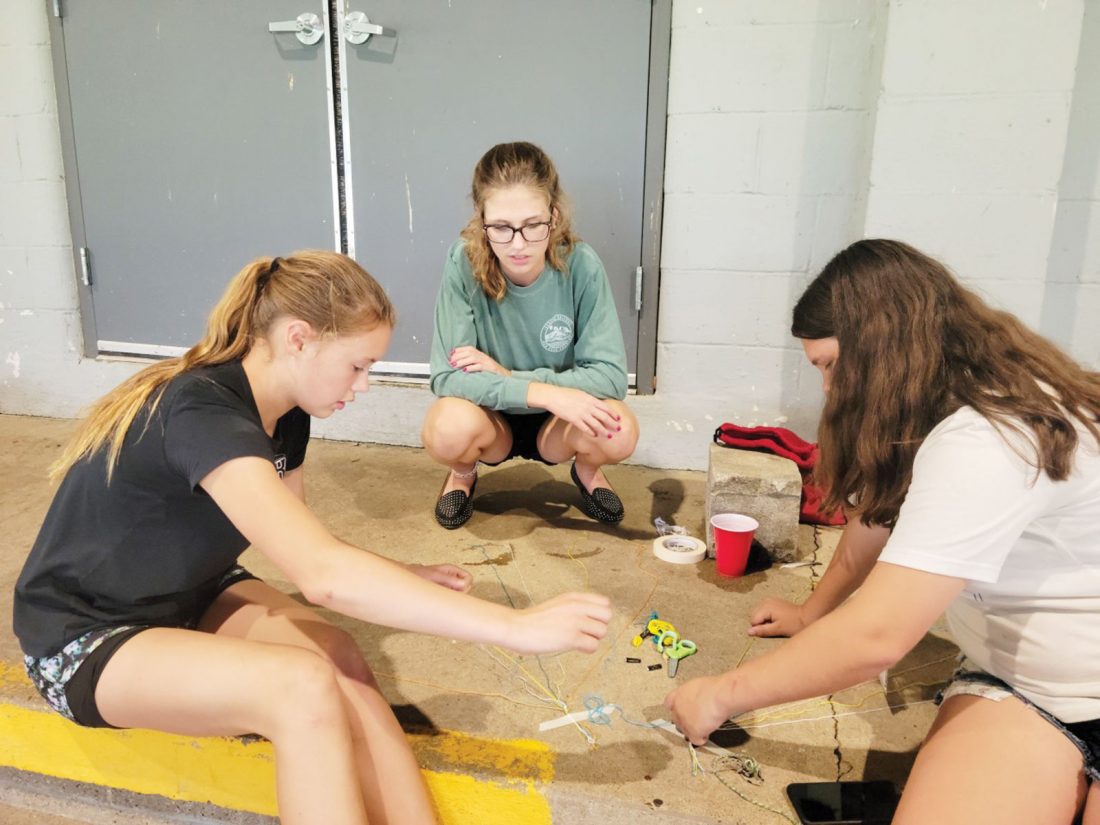 - Shayleigh Garb, 12, 4-H camp nurse Danielle Lockhart and Shyanne Deargh, 13, made friendship bracelets during craft class at camp. (Photo by Candice Black)