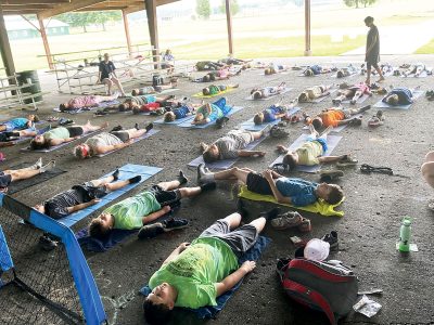 - Pam Santer from West Virginia University at Parkersburg teaches yoga to the children 12 years old and younger at 4-H camp Wednesday afternoon on Butcher Bend Road in Mineral Wells. (Photo Provided)