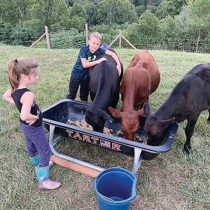 Braxton Fordyce and his sister Layleigh feed calves in preparation for the Wood County 4-H and FFA Summer Showcase Monday through Saturday at the Wood County 4-H Campgrounds on Butcher Bend Road in Mineral Wells. The event will include animal showing, judging and a livestock sale among other events. (Photo Provided)