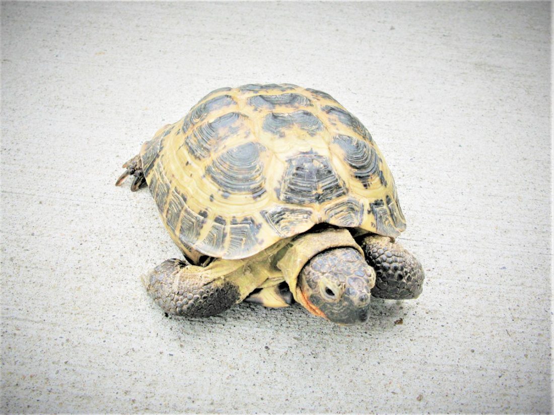 - Ivan the Russian tortoise takes a stroll on the sidewalk. (Photo by Jess Mancini)