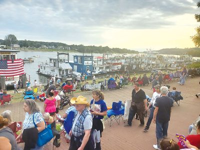 - Sternwheels like the Dixie and P.A. Denny could be seen sporting flags in remembrance of 9/11 on Saturday at the festival. (Photo by Madeline Scarborough)