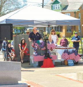 - Scot Heckert talks about showing veterans the respect they deserve Saturday at the Stepping Stones of Honor ceremony in Parkersburg City Park. (Photo by James Dobbs)