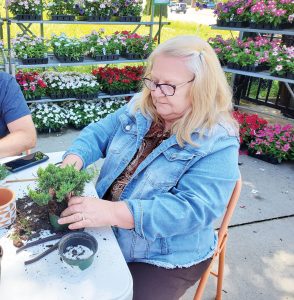 - Carol Pyle starts her own bonsai tree in the offered workshop Saturday. (Photo by Madeline Scarborough)