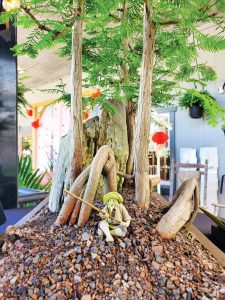 - The Ki No Kaze Bonsai Club displayed their personal Bonsais to the public Saturday at Scots Landscaping to teach people about the art of creating Bonsais. Some of them featured scenes and figurines caring for the trees. (Photo by Madeline Scarborough)
