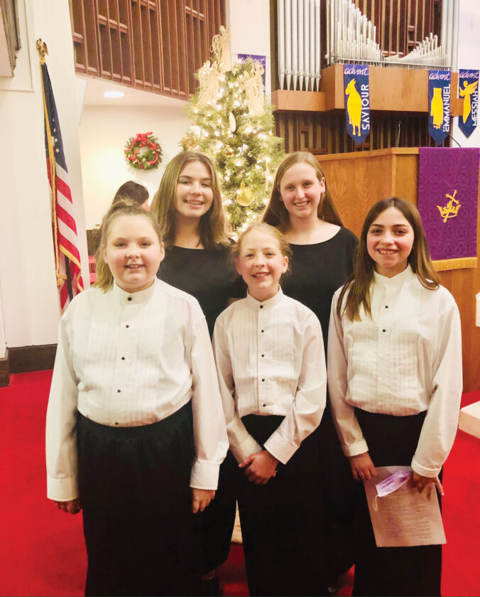 Maggie Ice, as well as other Grand Central Church youth sing in the Smoot Theater Childrens Chorus and Girls Ensemble. In front from left, Elaina Koskey, Parker Delbaugh and Khloe Porter. In back from left, Riley Ball and Maggie Ice. (Photo Provided)