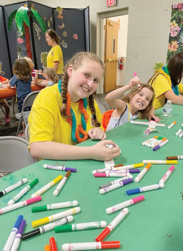 - Maggie Ice, left, works with Natalie Cole on a craft during vacation bible school at church. (Photo Provided)