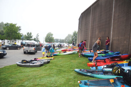- Paddlefest participants launch onto the Little Kanawha River near the confluence with the Ohio River on Saturday at Point Park in Parkersburg. (Photo by Ashley Knight)