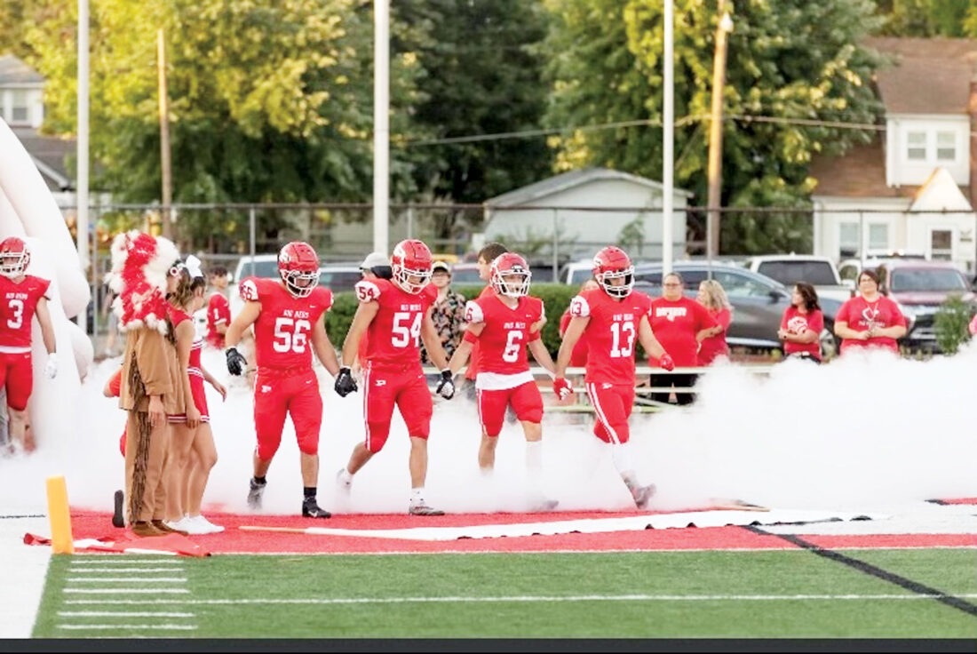 Grant Snyder (54) walks onto the field with the Parkersburg Big Reds during the 2022 season opener versus St Albans. The Big Reds won 52-0. (Photo Provided)