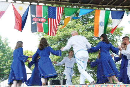 - Members of the Folkloric Dance Troupe demonstrate traditional Israeli folk dancing Sunday afternoon at the Mid-Ohio Valley Multi-Cultural Festival in Parkersburg City Park. (Photo by Evan Bevins)