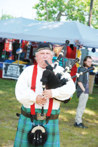 - Rodney Ritchey plays “God Bless America” on the bagpipes during the Mid-Ohio Valley Multi-Cultural Festival at Parkersburg City Park. He was representing the local historical site Henderson Hall. (Photo by Evan Bevins)