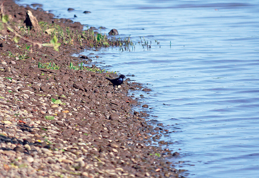 - A grackle walks along a rocky beach on the north side of the island. (Photo by Art Smith)