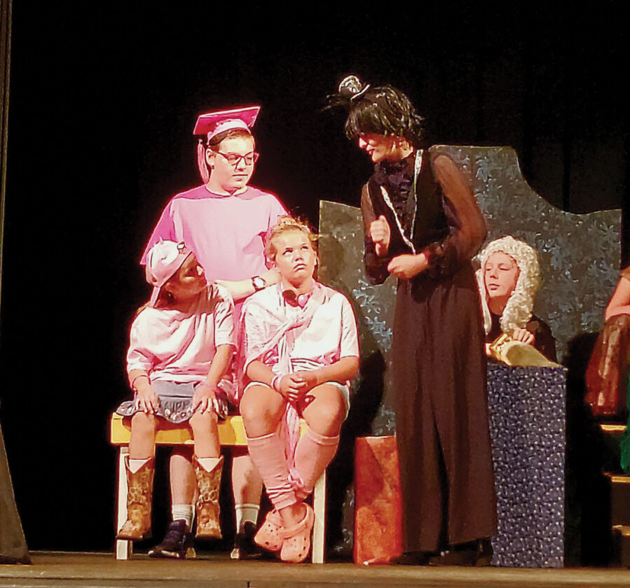 - From left, Layne Rem as Pig One, Charlie Brewer as Pig Two and Caleb McClung as Pig Three and Evil Stepmother played by Bridget Crock in the Mid-Ohio Valley Junior Players production of “The Big Band Musical.” The show will be presented Friday, Saturday and Sunday at the Mid-Ohio Valley Players Theatre in Marietta. (Photo Provided)
