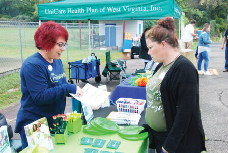 - Sheri Bond, with the Health Plan, speaks with Parkersburg resident Mary Huskey during the Harvest the Vision event Sunday afternoon at the Boys & Girls Club of Parkersburg. The Health Plan is a managed care organization serving Medicaid and Children’s Health Insurance Program recipients in West Virginia. Bond said she wanted to remind people on Medicaid to update their information with the state Department of Health and Human Resources to make sure they’re still eligible. (Photo by Evan Bevins)