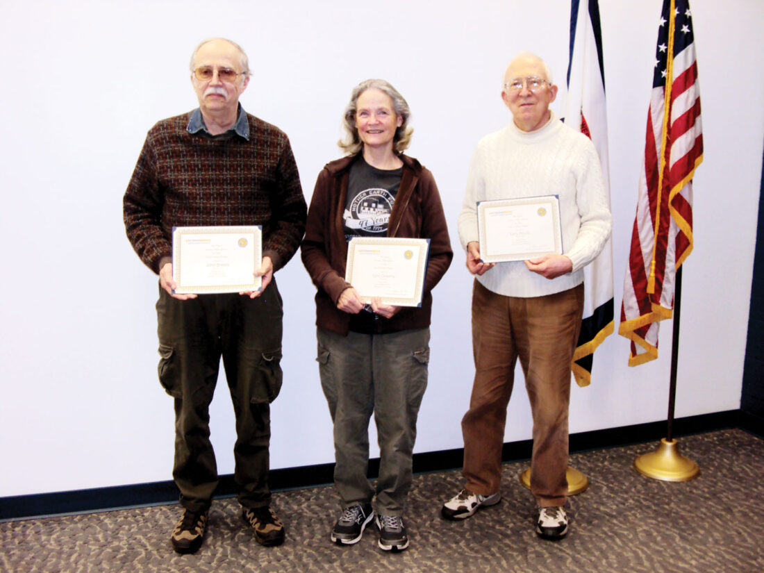 John Sheets, from left, Lynn Greenly and Tonty Playtis were honored as WVU Extension Master Gardener Volunteers. (Photo Provided)