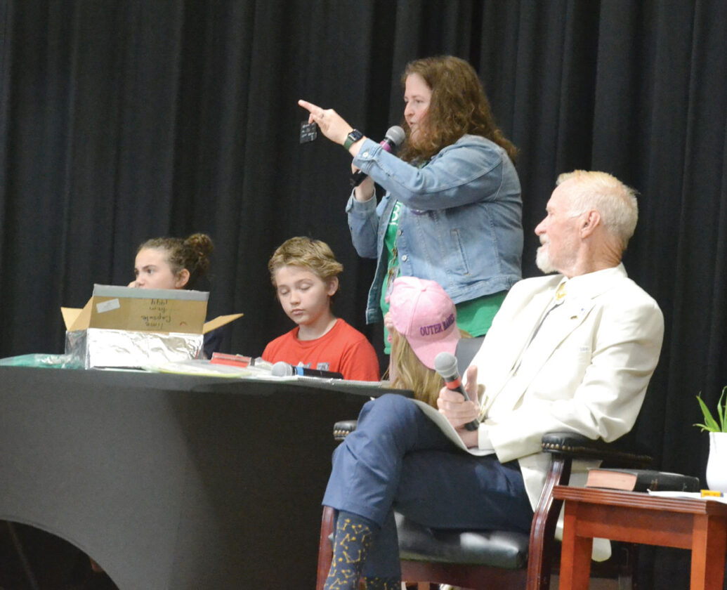 With the help of fourth graders Mason Hill and Nicole Ball, Efaw then packed the 2024 time capsule that will be buried by the flagpole and opened in another 30 years. Items included a newspaper article about a recent visit to the school by the governor, a rubber duck, this year’s yearbook, a homemade statue of the Emerson Eagle mascot, a copy of the lunch menu and pop-its.