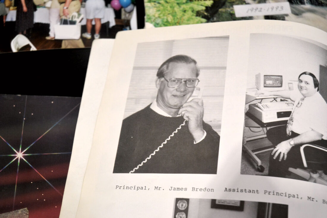 - Former Emerson Elementary Principal James Bredon pictured in the school’s yearbook in 1994. Bredon visited the school Wednesday as they opened a time capsule students put together in 1994. (Photo by Douglass Huxley)