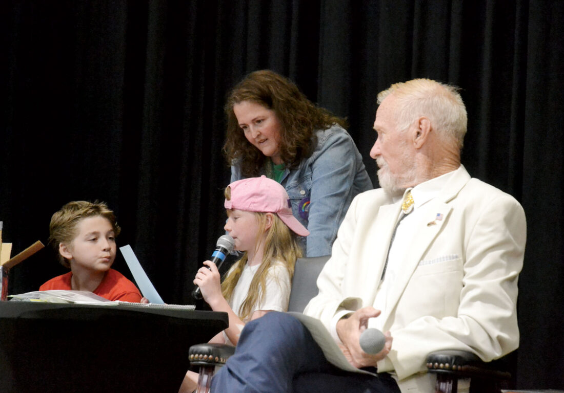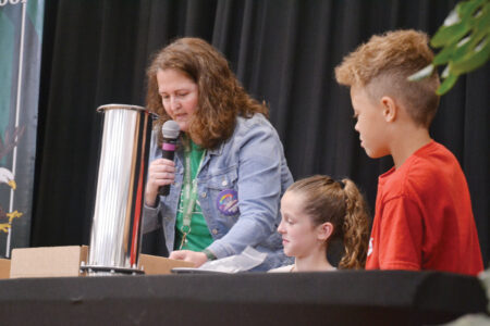 Fourth graders Ava Myers, Liam Hunter and Jordyn Jones helped Efaw unveil the capsule’s contents that included letters from fourth graders in 1994, a yearbook, a Nintendo Power magazine, a phone book and a VHS tape pulled out by Hunter.
