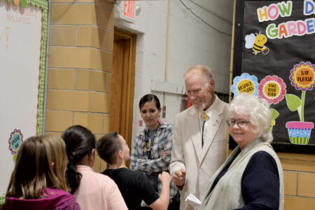 - Former Emerson Elementary Principal James Bredon talked to current principal Tabatha Efaw during a Q&A Wednesday as the school prepared to open a time capsule from 1994. Bredon talked about his time as a principal that year and the many more he had at the elementary. (Photo by Douglass Huxley)