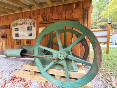 An engine that used to be part of the oil drilling at Volcano sits under a shelter at Mountwood Park during Volcano Days Friday. The engine arrived at the park a few weeks ago and is one of the new things people can see this year at Volcano Days. (Photo by Michelle Dillon)