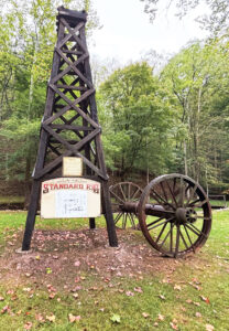 A one-third scale replica of the oil derrick that used to be part of Volcano is just one of the many pieces of Volcano’s history that Volcano Days attendees can see. (Photo by Michelle Dillon)