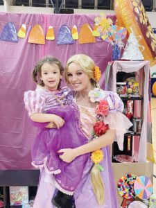 Princess Abby Delancey holds a young treat or treater at Sweet Treats on Broad Street in 2023 at the YMCA of Parkersburg. This year’s event is 6:30-8:30 p.m. Oct. 26 at the YMCA. (Photo Provided)