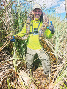 Hackathorn is no stranger to the Florida Everglades, which was part of the appeal to become a python hunter. Hunting python for eight years, Hackathorn helps his friend with a charter service for other python hunters and is a licensed air boat captain.