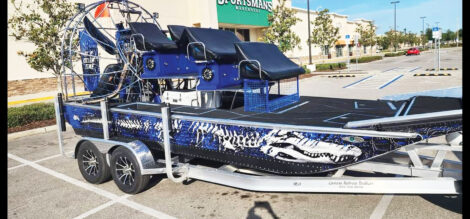 The airboat captained by Hillbilly Dave Hackathorn in the Florida Everglades. Hackathorn hunts Burmese pythons that have nearly eradicated the mammals in the Everglades and will be in the first episode of Season 5 of “Swamp People: Serpent Invasion” at 9:30 p.m. Jan. 2 on the History Channel. (Photo Provided)