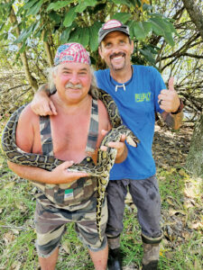 - Dave Hackathorn and his wife, Chris, pose with a python captured in the Florida Everglades. (Photo Provided)