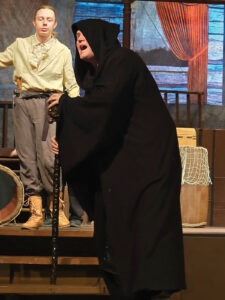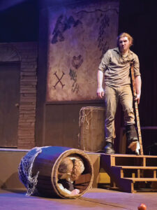 “Blind Pew has been my favorite character to play out of the three. I loved him in the book and Ken Ludwig’s script gives me the chance to really do this sinister pirate justice. I felt on stage Pew should have a whimsical quality added to his cruel nature. I also play Captain J. Flint who I really wanted to make your classic golden age pirate Captain. Then Calico Jack Rackham is fun because I get to do a good bit of improv with him, loosely portraying him after the real buccaneer. I also voice Silver’s Parrot in the show.”
