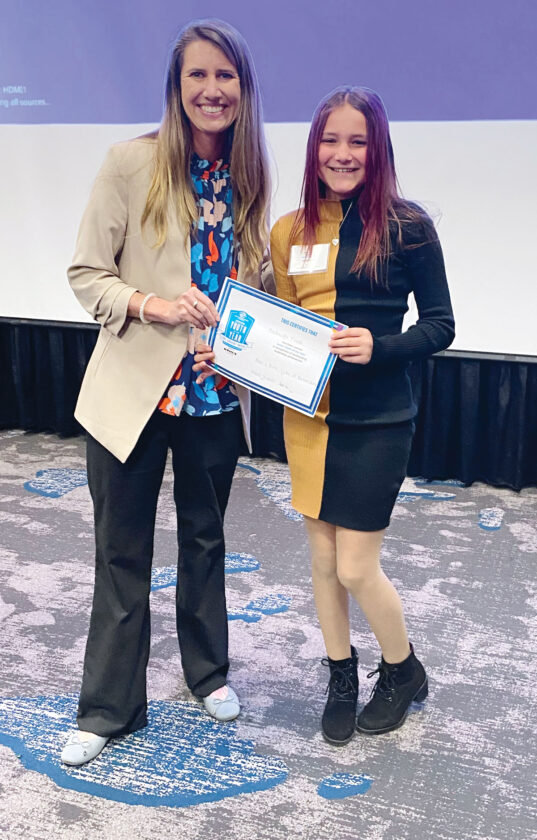 Hadleigh F., with the Boys & Girls Clubs of Parkersburg, right, was named the West Virginia Junior Youth of the Year during the Boys & Girls Clubs of West Virginia Spring Summit in Charleston. She is shown with Katie Lee, left, Director of Organizational Development for Boys & Girls Clubs of America. (Photo Provided)