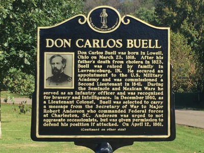 - Major General Don Carlos Buell was born on Buell Island at Lowell on March 23, 1818. He graduated from the U.S. Military Academy in 1841 and commanded Federal forces at the Battle of Perryville. His service is recognized by a historical marker dedicated by the Civil War Round Table on Buell Island in 2017. (Photo Provided)