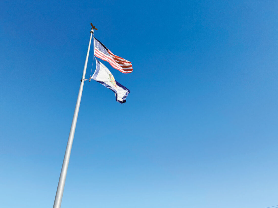 The American flag flies high above the National Guard Armory where the Welcome Home Vietnam Veterans event was held Friday in south Parkersburg. (Photo by Amber Phipps)