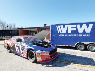 - Veterans of Foreign Wars and its race car parked in front of the armory. (Photo by Amber Phipps)