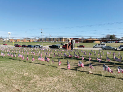 - American flags line the front lawn of the armory in honor of every fallen West Virginian Vietnam soldier. (Photo by Amber Phipps)