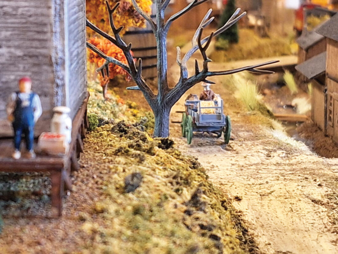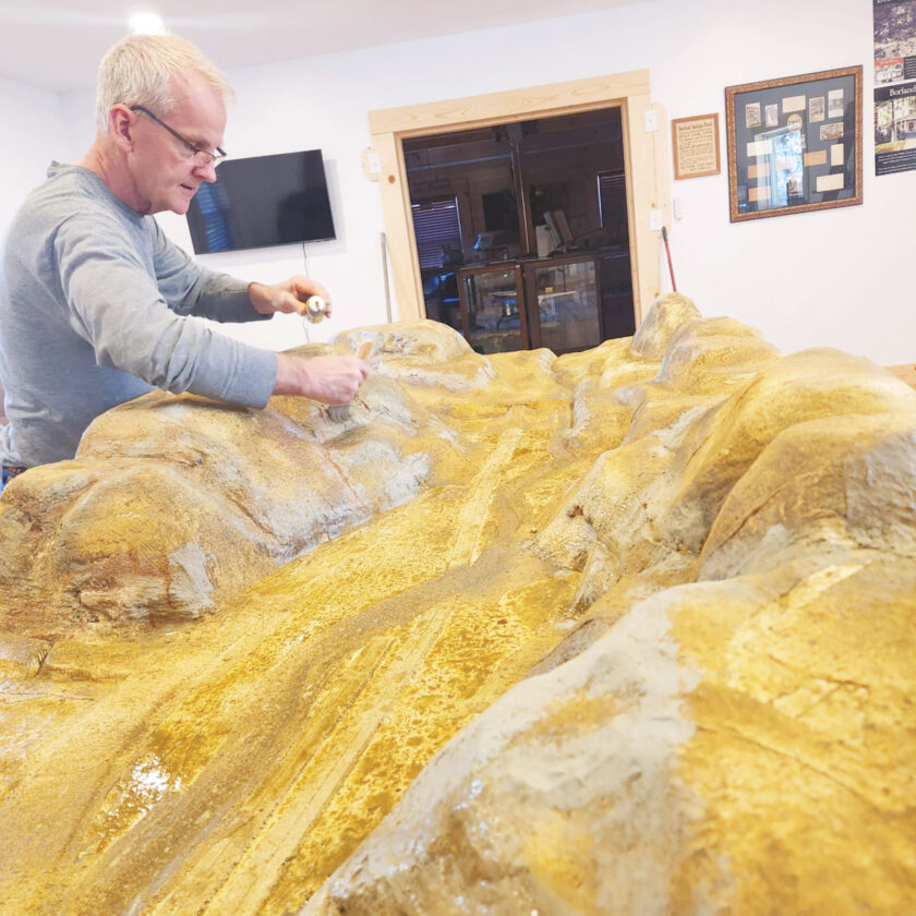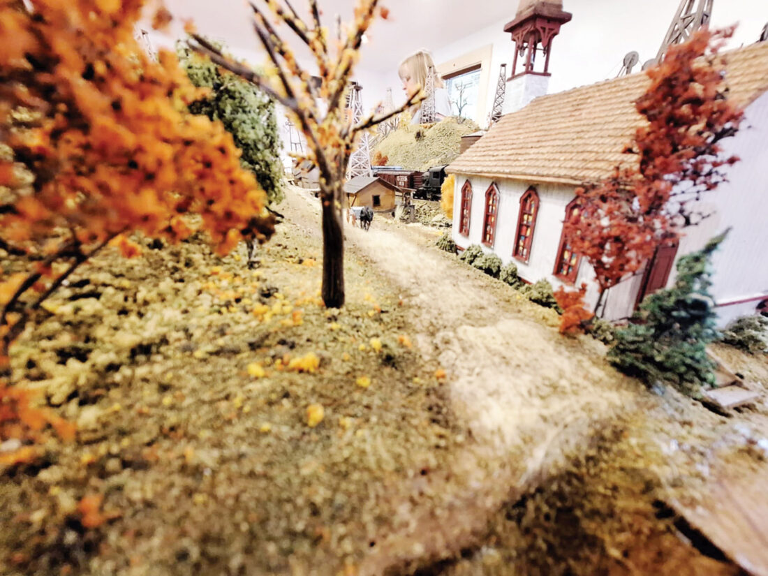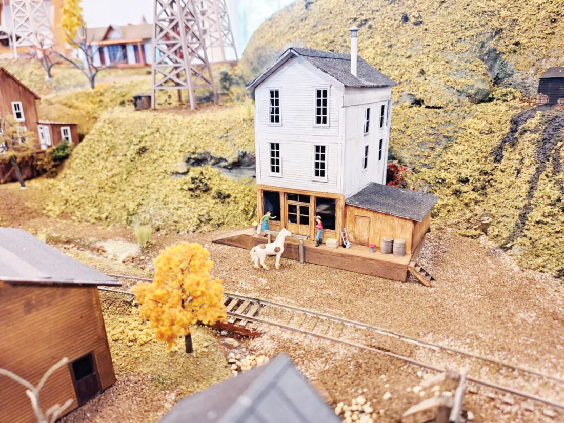 “While the buildings and trains are true to scale, I had to condense the mountains and scenery to fit the available space at the museum,” said Bee. “If I would have made the whole thing HO scale, it would have taken up the entire room at the museum and probably part of another one.”