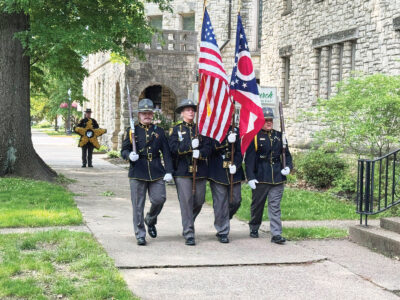 - The Washington County Sheriff’s Office Honor Guard carried the American and Ohio flags during the Peace Officers Memorial Wreath Laying Ceremony on Thursday. (Photo by Amber Phipps)