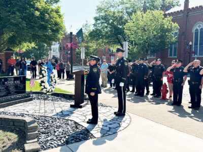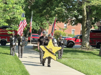MARIETTA — The community gathered for the wreath laying ceremony in front of the Peace Officers Memorial and the Washington County Sheriff’s Office Memorial on Thursday.