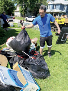 Denver Jordan with the Mid-Ohio Valley Fellowship Home takes out trash Friday as volunteers participate in the United Way of the Mid-Ohio Valley’s annual Day of Action. Volunteers with the home and six people from Celanese helped clear out the home’s attic space so the space can eventually be used for services within the home. Jordan said he was giving back to the Fellowship Home for everything they are doing for him. (Photo by Brett Dunlap)