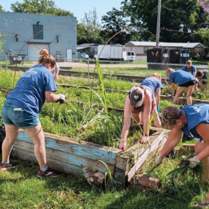 A crew with WVU Medicine Camden Clark Medical Center did work Friday in the planting beds at the Washington County Boys and Girls Club in Marietta on Friday as part of the United Way of the Mid-Ohio Valley’s annual Day of Action where volunteers helped out on a number of community service projects. (Photo Provided)