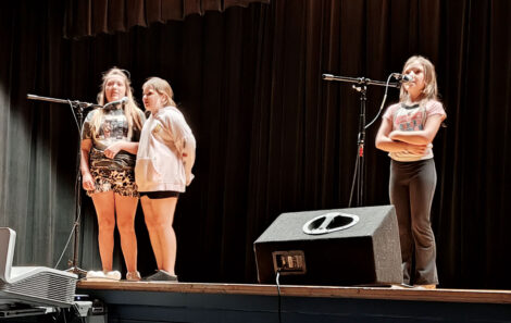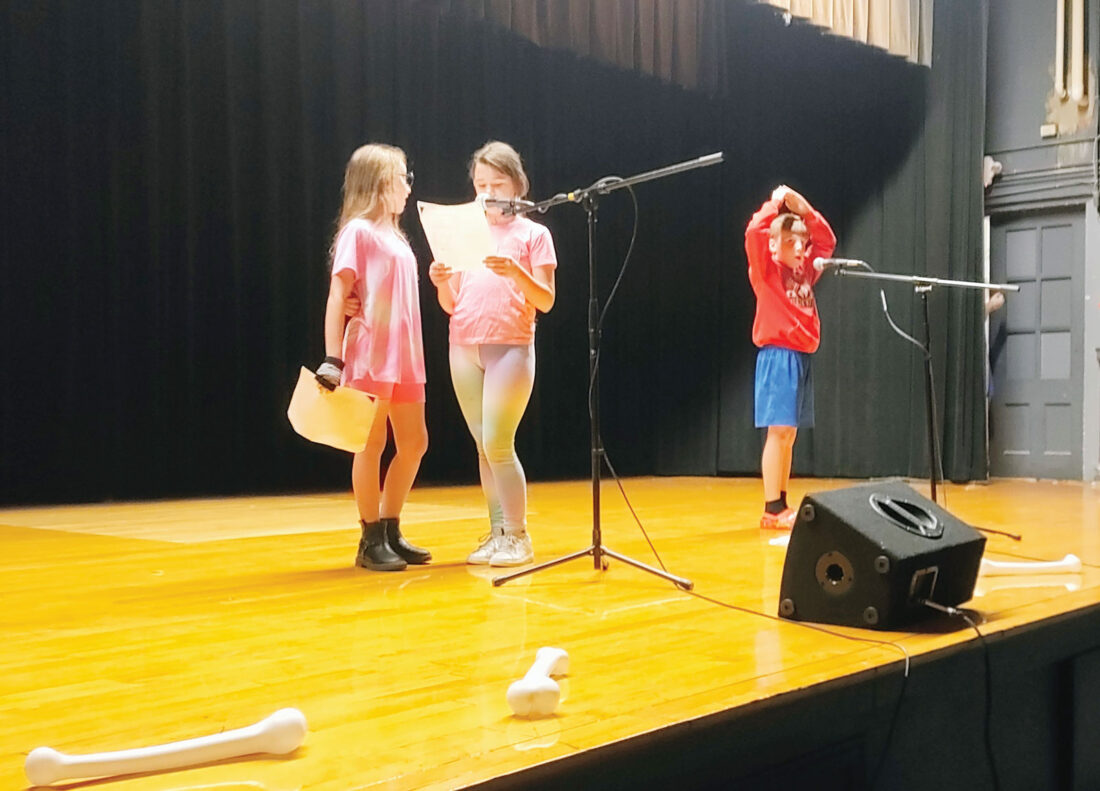 - Jefferson Elementary students Emmy, Layla, and Saige perform a song about the 50 United States Friday at the school’s second annual Talent Show. Students’ last names were not received in time for print. (Photo by Douglass Huxley)