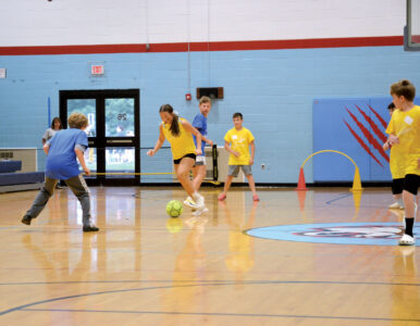 - Blennerhassett Middle School students participate in a game of Soccer Stars Friday for the school’s Olympic events. (Photo by Douglass Huxley)