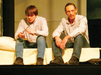 Andy Dufresne, played by Elijah Conger, left, speaks to Red, played by Ike Eastwood, in the stage adaptation of “The Shawshank Redemption,” opening at 7:30 p.m. Friday at the Mid-Ohio Valley Players Theatre in Marietta. Tickets are $13. (Photo Provided)