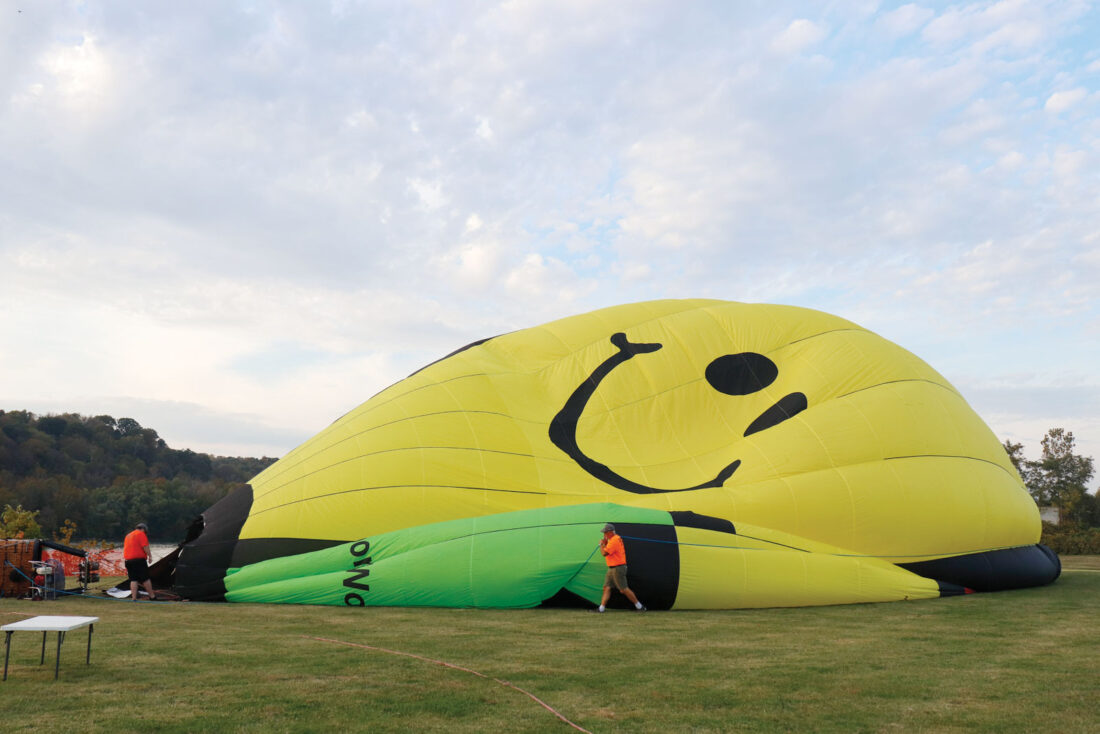 - The crew from Indianapolis-based Midwest Balloon Rides prepares their hot air balloon for rides at Saturday evening’s Glow on the O Festival in Vienna. (Photo by Gwen Sour)