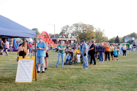 - Dozens of attendees to Vienna’s Glow on the O Festival line up to purchase tickets for hot air balloon rides. (Photo by Gwen Sour)