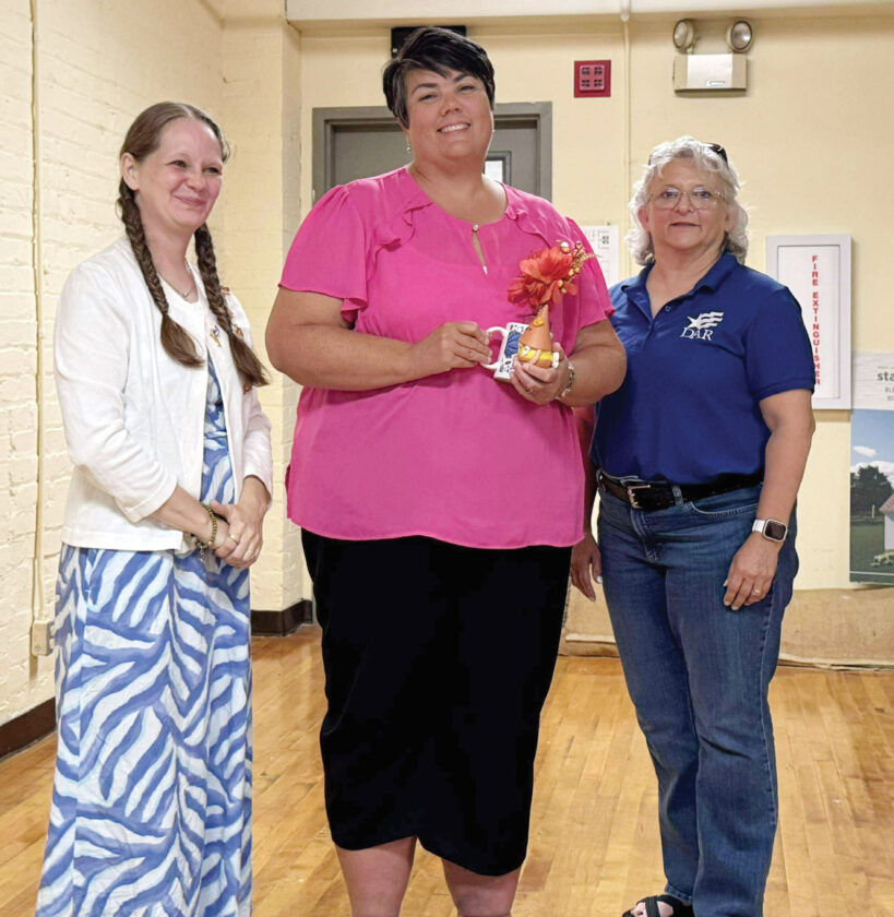 From left, chapter Regent Shannon Sams-Harper, new member Emily Larkins and Randi Gray of the Blennerhassett Chapter NSDAR at a Sept. 20 meeting. (Photo Provided)