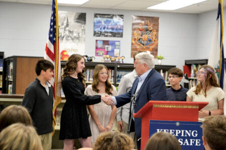 - Governor Patrick Morrisey visited Blennerhassett Middle School on Friday to kick off Red Ribbon Week. (Photo by Douglass Huxley)